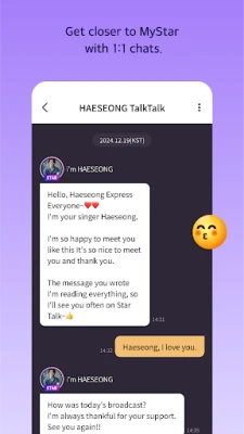 - You can exchange private 1:1 messages with MY STAR! Share your excitement with MY STAR!