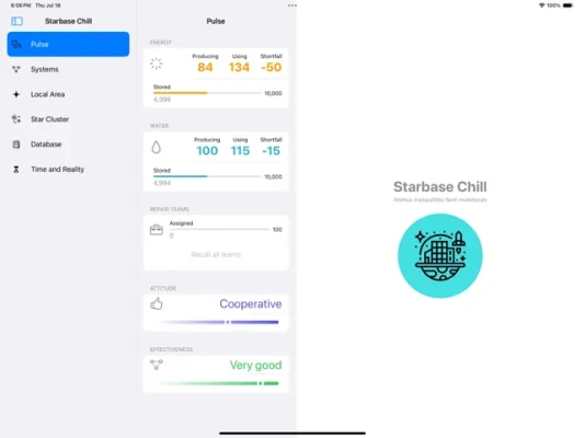 Starbase Chill is a starbase simulation, where there is much to do, but no particular urgency.