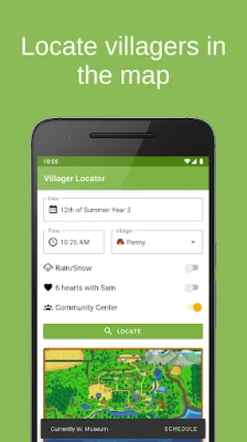 · Villager Locator to locate every NPC in the map. · Calendar and Crop Planner: create a task list and plan your crops. · See festivals and birthdays with the calendar. · Keep track of the Community Center bundles. · Listen to the full soundtrack of Stardew Valley. · Get info about the villagers (Loved gifts, birthday...) · Get information about the crops, fish and animals. · Learn where you can find all the artifacts and keep track of the completed ones.