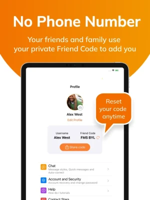 On most messaging platforms, once your phone number or username is publicly discovered, you are no longer in control of who can contact you. Stars is safe by design - instead of searching for people to add, users need their friend’s username as well as their unique private Friend Code. With the ability to reset your Friend Code, you are always in control of who can connect with you. All group chats are also protected with a unique group code.