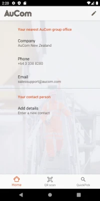 Need support for your AuCom product? The Start Here app is pre-populated with contact details for your local AuCom representative, as well as your nearest AuCom Group office. If you have contact details for your local installer or for a personal support contact, you can also add these details to the app for safekeeping and quick sharing of QR data or quote requests.