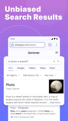 Unprofiled Search Results: Experience search without biases. Startpage delivers unprofiled results, ensuring a fair and impartial exploration of the web.