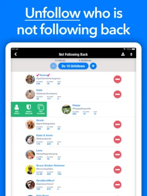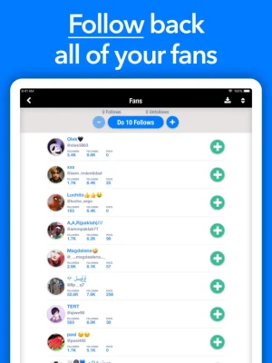 And then smart management! Follow back the good fans and unfollow who is not following back... with just one click! Give up wasting your time...