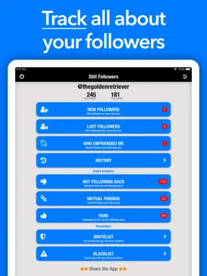 Let the app find out who is not following back, your fans, your new followers, your lost followers...