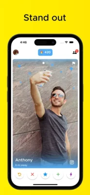 Both likes and passes are private choices – we won’t tell the other users. However, you may want to stand out of the crowd, and let them know you really want to be Snap friends! For that, you have hyper like. Hyper like is special type of like that sends a notification to the other user, and your profile will appear in sparkling blue stars to them. Cool, huh?