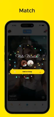 The app will display nearby users’ profiles, based on your preferences. You’ll have the option to either like them, or pass. If you both like each other, then that’s a New Match! A match means you may add each other on Snapchat!