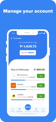 Pay later without surprises. When you shop with Suave, you get a complete overview of all your purchases and finances. And you can even make early payments.