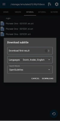 - Download subtitles for videos to your phones SD-card or a PC (network share/drive: Samba/SMB and SFTP/SSH are supported)