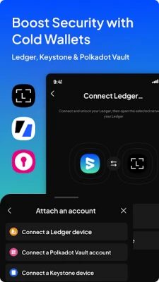 7. Boost security with hardware crypto wallets Ledger & Keystone as well as Parity QR-signer
