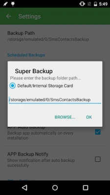 If you intend to do a factory reset on the phone, please make sure default backup folder is in your external SD card before doing it. If not, please copy the entire backup folder ("SmsContactsBackup" by default) to your external SD card