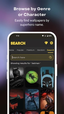 2. Search: Use the search function to find wallpapers of your favorite superheroes, including Batman, Superman, Ironman, Spider-Man, and more.