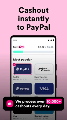 We offer instant cashouts to PayPal and 70+ gift cards. Our gift card rewards include Amazon Gift Cards, Visa, and Walmart.