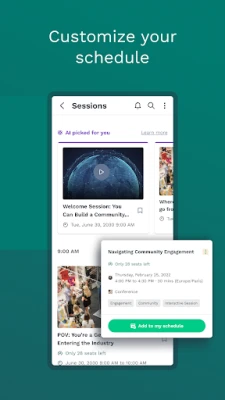 Swapcard lets you bookmark the sessions you want to attend and create a personalized schedule for a stress-free event day.