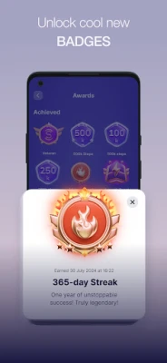 - Get moving, get badges: Hit your daily step goals and collect unique badges for each milestone achieved.