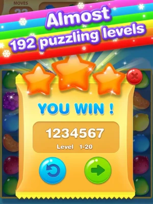 Game Features: - Hundreds of incredible sweet levels in candy kingdom - Make matches to gain points and level up - Collect yellow ducks and rainbow icebar to help with tough situations - Arrangement of 4 or more candies in line will create a special candy blowing out obstacles - Smooth gaming experience and excellent animation - Easy and fun to play and more challenges to master - Free launched for all of you