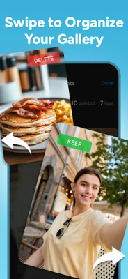 Alright, here’s how Clean AI - Phone Cleaner Swipe rolls: Swipe right to save a photo, left to delete it. Messed up? No biggie—just tap to undo. Curious about a pic? Hold it down to see the details. Once you’ve gone through a month’s photos, take one last look at your keepers and trashed ones, make any quick fixes, and that’s it—clean gallery, no stress!