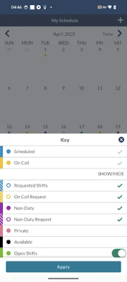 • Request open shifts and trade.