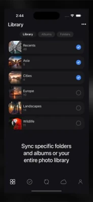 Sync for iCloud Drive synchronizes your phone’s photo library including the album and folder hierarchy to iCloud Drive.
