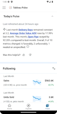 Tableau Mobile gives you the freedom to stay on top of your data, no matter where you are or when you need it. With a fast, intuitive, and interactive experience, explore your dashboards and find just what you’re looking for, all from the convenience of your mobile device.