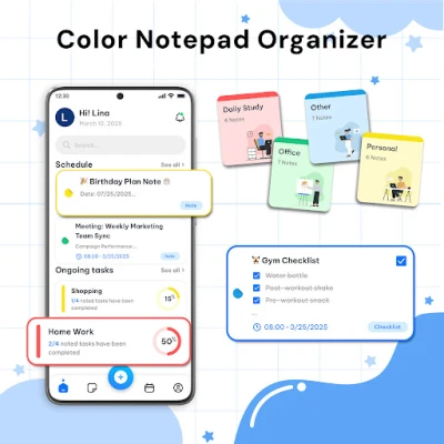 • Use easy notepad to take notes quickly with rich formatting like handwritten notes, daily checklist