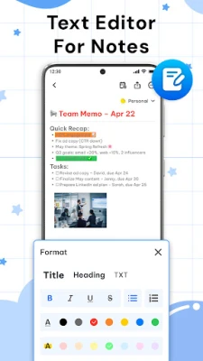 • Personalize your cute notes with text colors, bold or italic styles...