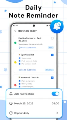 • Get daily reminders to review your cute notes, tasks, or ideas in your digital notebook.