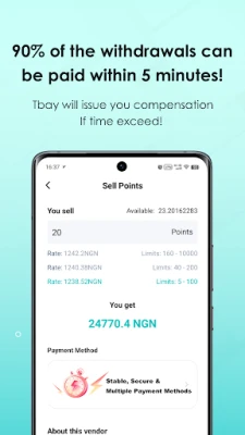 Maximize your earnings with Tbay’s daily rewards and special deals. Check in daily to earn points and participate in exciting events to win bonuses and gifts.
