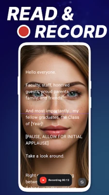 Record directly with your favorite camera app! Our smart prompter overlay floats on top of any app (Instagram, TikTok, Facebook, your phone's native camera). You can position the widget anywhere and resize it for maximum comfort. This is the ultimate floating script reader!