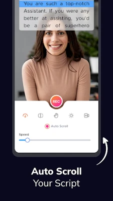 • Change text scrolling speed on the prompter, manually set exposure to optimize lighting, monitor audio during video recording