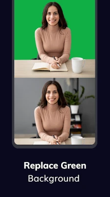 • Replace any green background with any image or video loop using with the power of AI