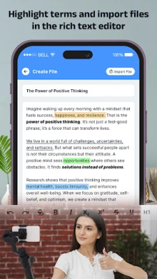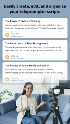 Easily write scripts within the app or import from Google Drive, File Manager, or .txt files. Organize your content in seconds!