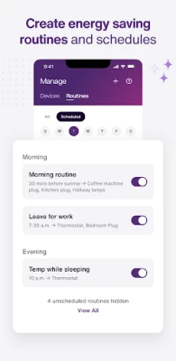 * Automate your smart plug connected appliances and smart thermostat to shut them off when they are not in use