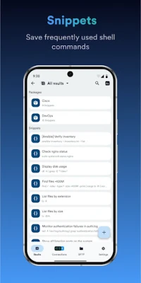 · Save your favorite and frequently used commands and shell scripts to execute them with a tap instead of typing.