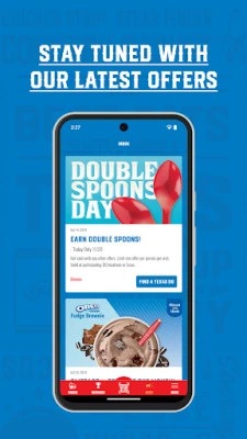 DQ® Texas Rewards Program! • Save with weekly exclusive app deals. • Get special news and offers. • STOP 5 times to earn a $5 reward! • Order right from the app. Available at participating locations. • Get an extra Spoon for referring DQ® Texas to your friends! • Send your ideas and feedback to DQ® Texas. • Find a DQ® Texas near you.