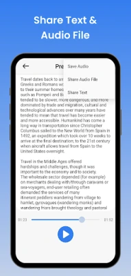 Text Speaker App is your go-to solution for effortlessly converting text into audio. Extract text from documents and edit it to suit your needs, or enter text directly and proceed to generate high-quality audio. Choose from multiple languages and voices to customize the audio output. Audio can also be saved in local storage. Play the audio directly within the app or share it seamlessly anywhere. Simplify your tasks with this intuitive text-to-speech tool!