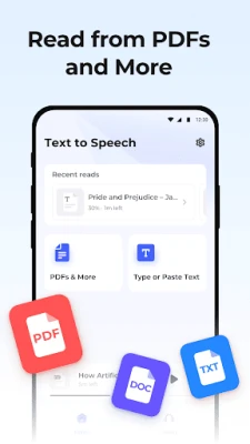 Looking for the best text to speech app? With Text to Speech - AI Reader, you can instantly convert text into lifelike audio and listen anytime, anywhere. Whether you're working out, cooking, commuting, or studying, our powerful text to speech reader delivers hands-free listening with humanlike AI voices.