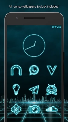 The Grid (Free Version) is a neon blue/teal theme with a focus on Sci-Fi aesthetics with digital 3D renderings of futuristic backgrounds. Glowing neon blue futuristic sci-fi Icons have transparency to blend in well with your backgrounds. Icons also feature a 3D looks and handmade designs. Custom wallpapers have variations in darkness for you to experiment with, or use your own backgrounds to create your own futuristic theme.