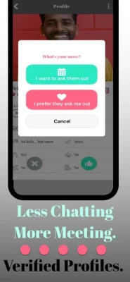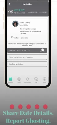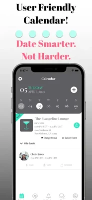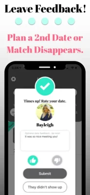 - set up your calendar and send to people you want to meet - during your date, use the in- app timer to stay on track - rate your date with a thumbs up if you’d like to see them again, thumbs down for the match to disappear