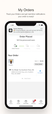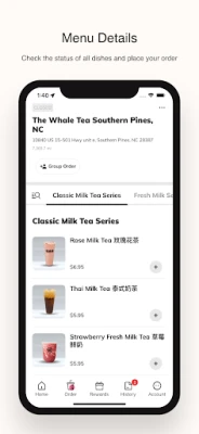 Order ahead and get your food without the wait! Menu Details Check the status of all dishes and place your order. My Orders Track your Orders and get real-time notifications your order is ready! Gallery Snap and Share your The Whale Tea NC Moments with others. My Account Check your Reward Balance, Order History and more.