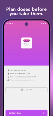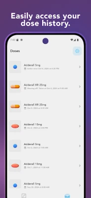 - Track Medications: Easily track and visualize your prescribed Adderall, Concerta, Focalin IR, MYDAYIS, Ritalin or Vyvanse doses