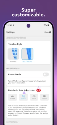 - Customizable Reminders: Never forget to take your medication again with reminders for scheduled doses and when your medication is wearing off