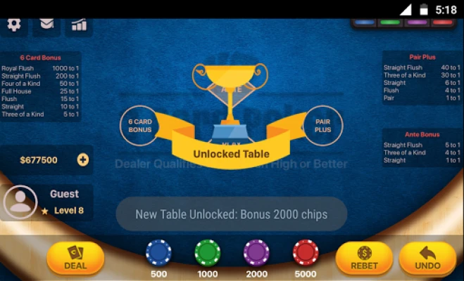 • High stake tables get unlocked as you clear Levels