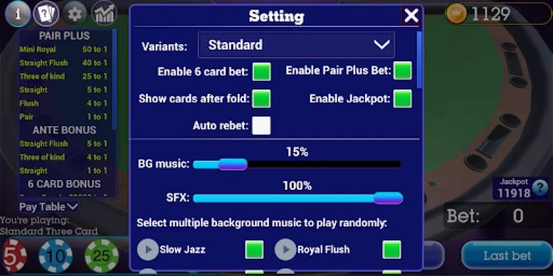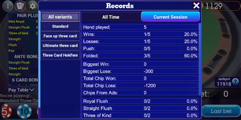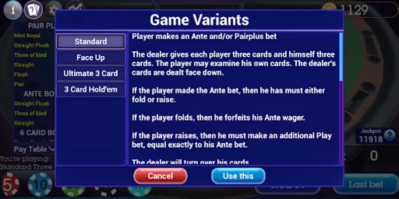 In this app, there are 4 Three Card Poker variants for you to play or practice before going to real casinos:
