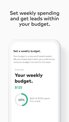 Set lead prices and pay only for the jobs you want. Set a weekly spending budget and get as many leads as possible within it. Change your budget as often as you want to scale your business to suit your needs.