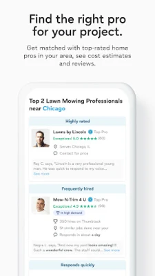 ► Thumbtack finds professionals and house services and shows you a list of available pros in your area. You can quickly find the one that’s right for your home project and book a service directly in the app.
