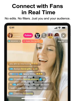 - Gain fans, receive virtual gifts, and build your community—all with just one tap.
