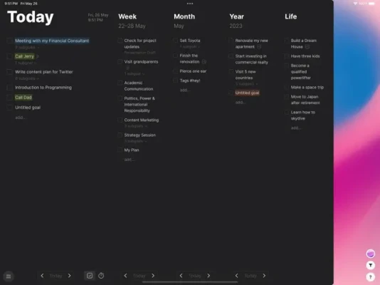 · Rich Text notes for your goals (subgoals, links, quotes, headlines and more)