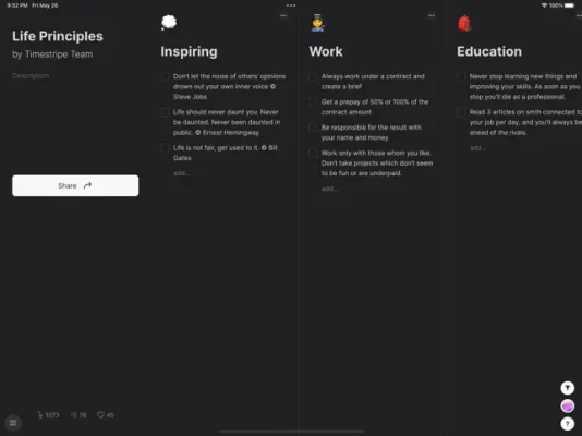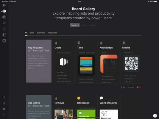 Create your own productivity templates, favourite movie lists, or share your bucket list with the world.