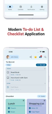 To-Do List, Modern Checklist +, as a To-Do List Productivity Planner, Task Manager App, dedicated to help users stay on track todo list, free daily planner and important task reminders, control item lists when shopping, cooking, planning outings or working,... . Keep your life and work well organized. Install and try now!