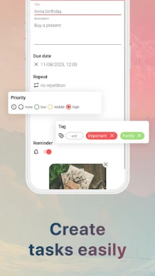Use the filter function to sort your task list by tags, priorities, or due dates. Quickly find what matters most to you with the search feature.